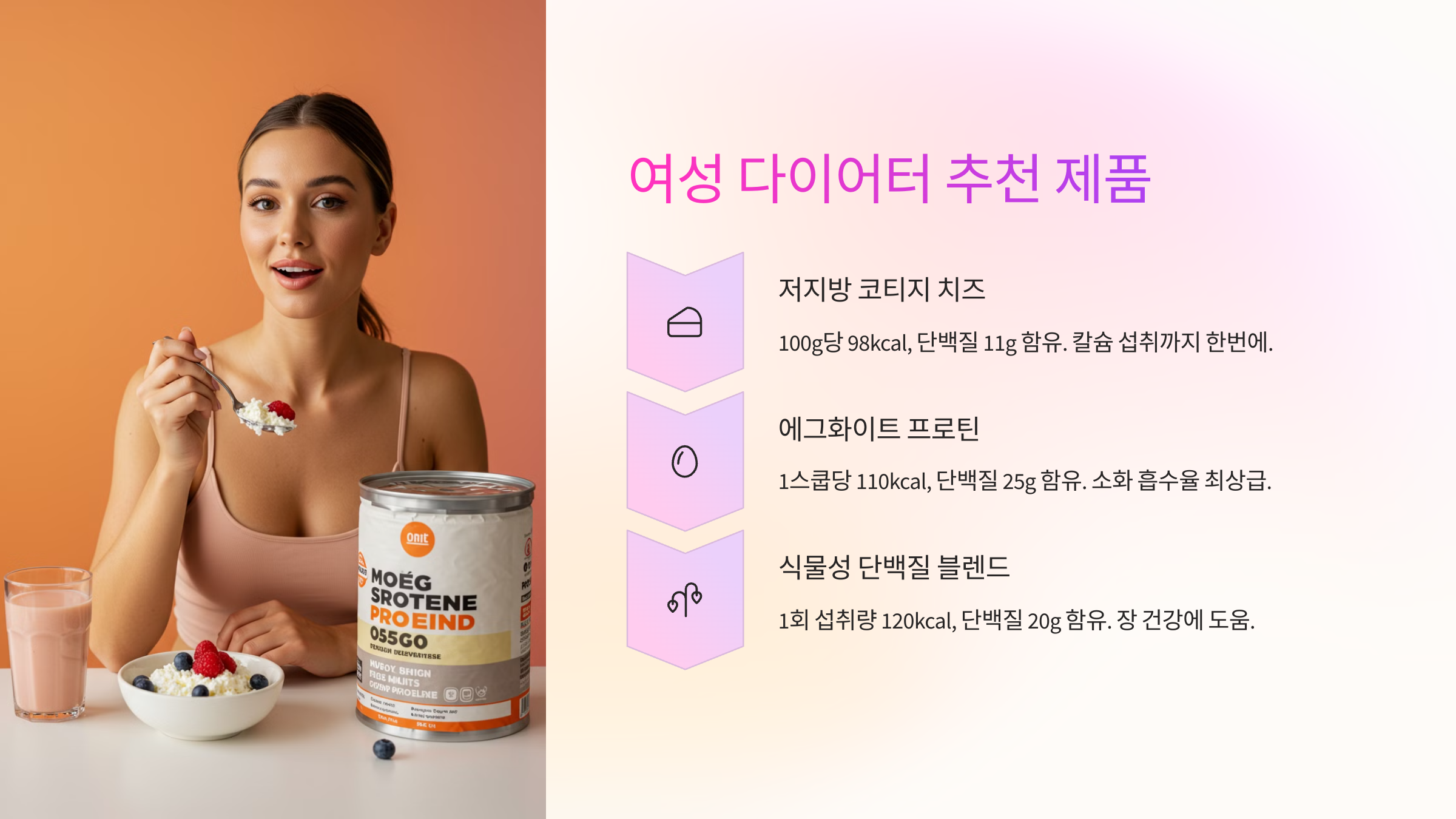 💃 여성 다이어트는 단순 체중감량이 아니라 근육 유지 + 호르몬 균형 + 피부 탄력까지 챙기는 게 중요해요. 그래서 여성 맞춤형 단백질 제품이 인기가 많아졌어요!
