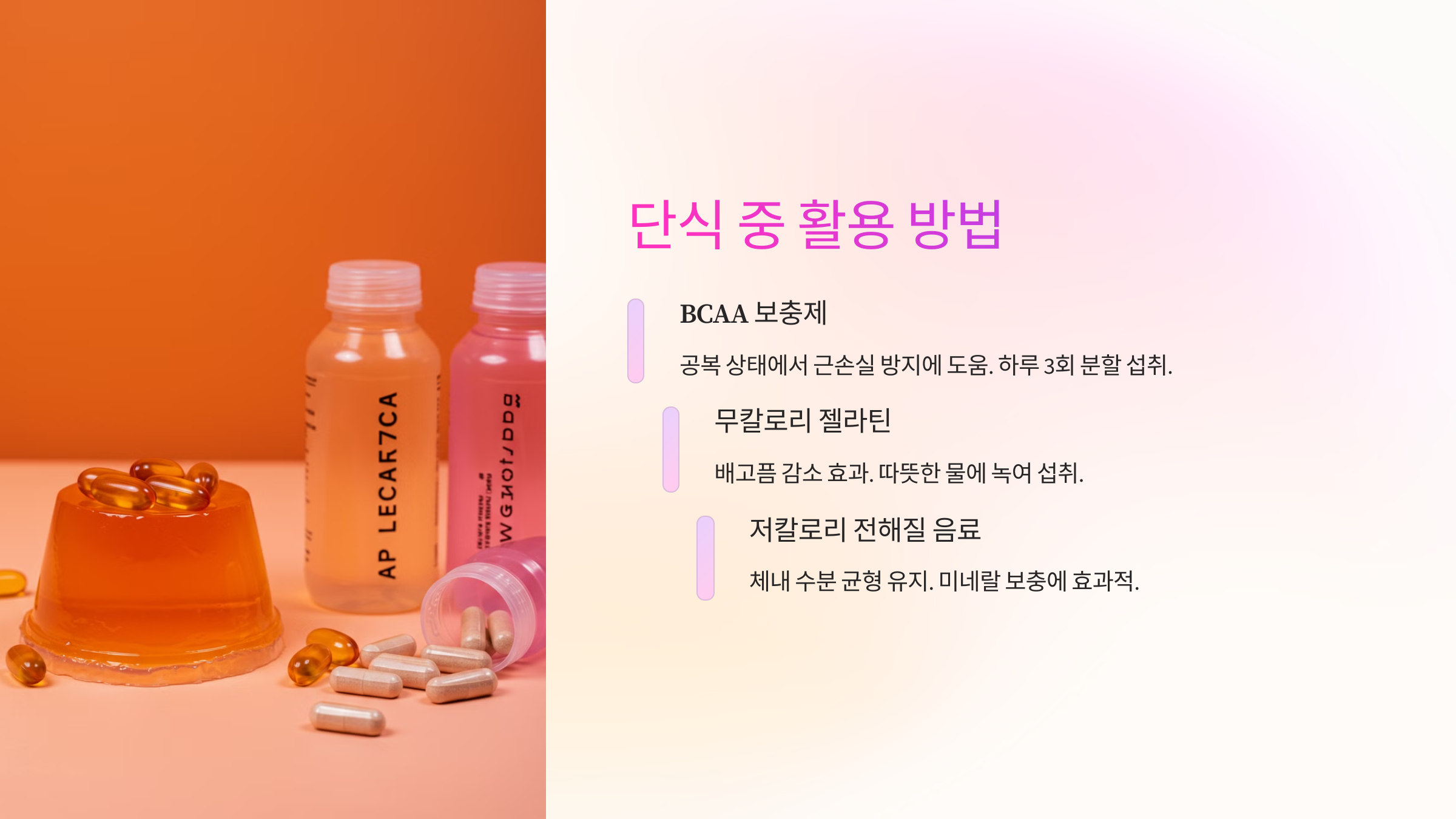 💡 이때 중요한 건 단식 시간엔 철저하게 공복 유지하면서도, 식사 가능한 시간에 단백질을 충분히 보충해줘야 한다는 점이에요. 그래야 근손실 없이 체지방 감량이 가능하거든요!