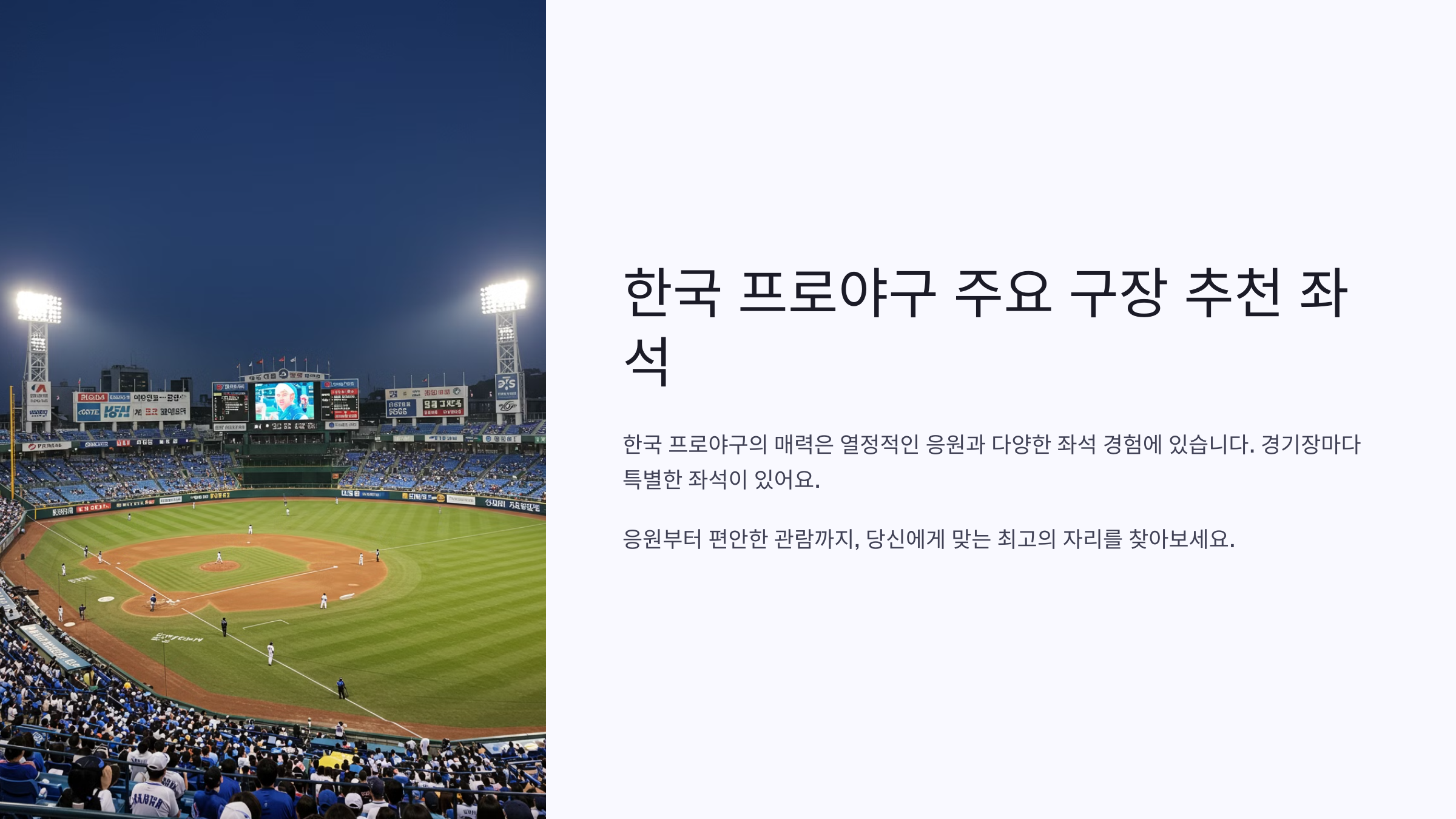 그래서 준비했어요! KBO 10개 구단 홈구장 좌석 추천을 완벽 정리했습니다. 직관 꿀팁, 분위기, 가성비, 뷰맛집까지 싹 모았어요!