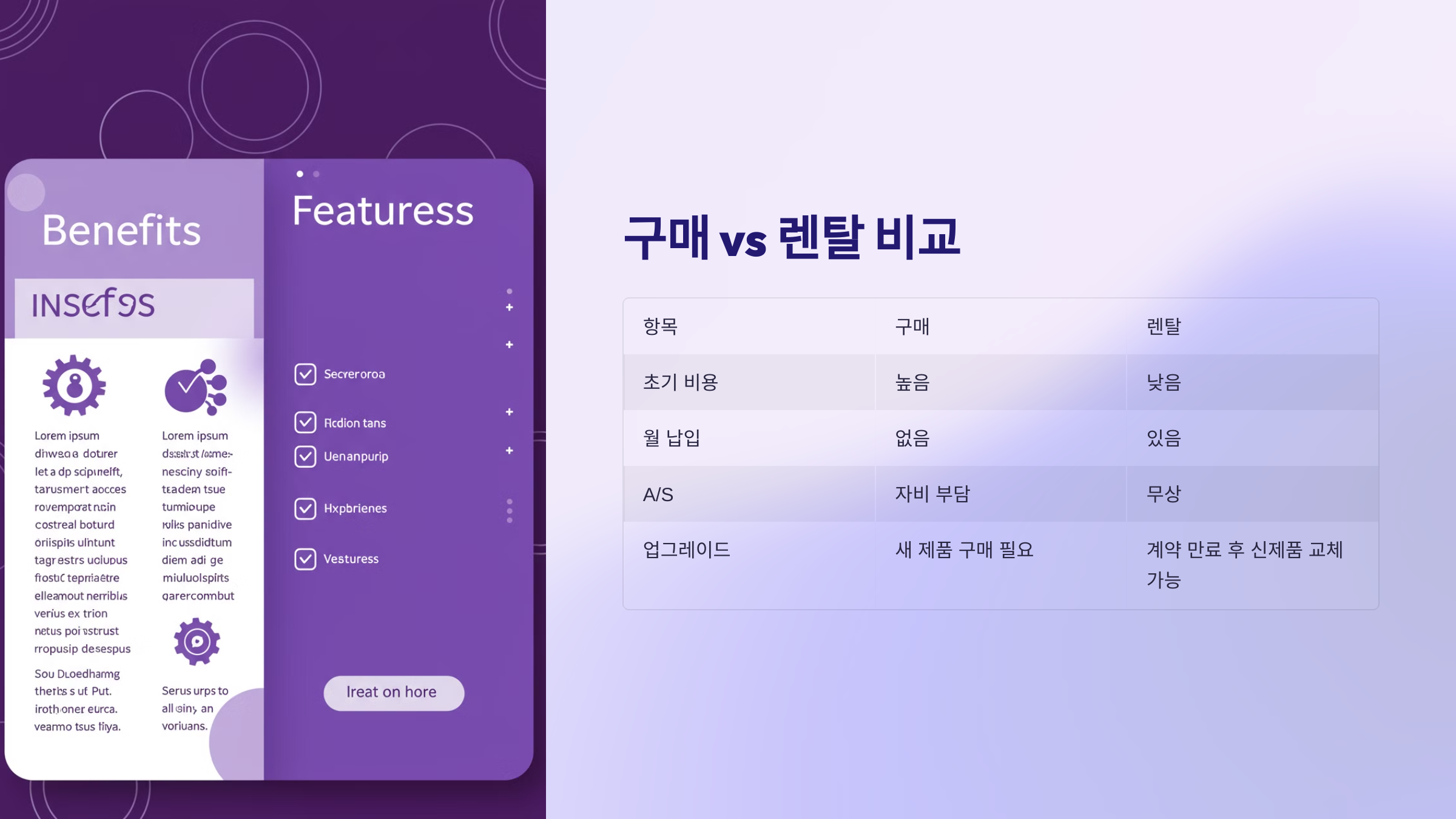 구매 vs 렌탈 비교표