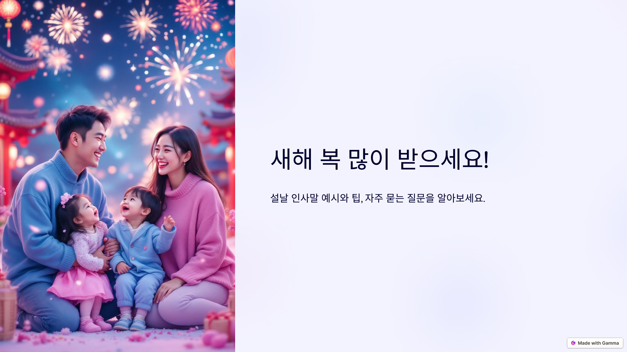 - "🎆 설날 잘 보내시고, 새해에는 웃음과 행운이 넘치는 멋진 한 해가 되시길 바랍니다!"