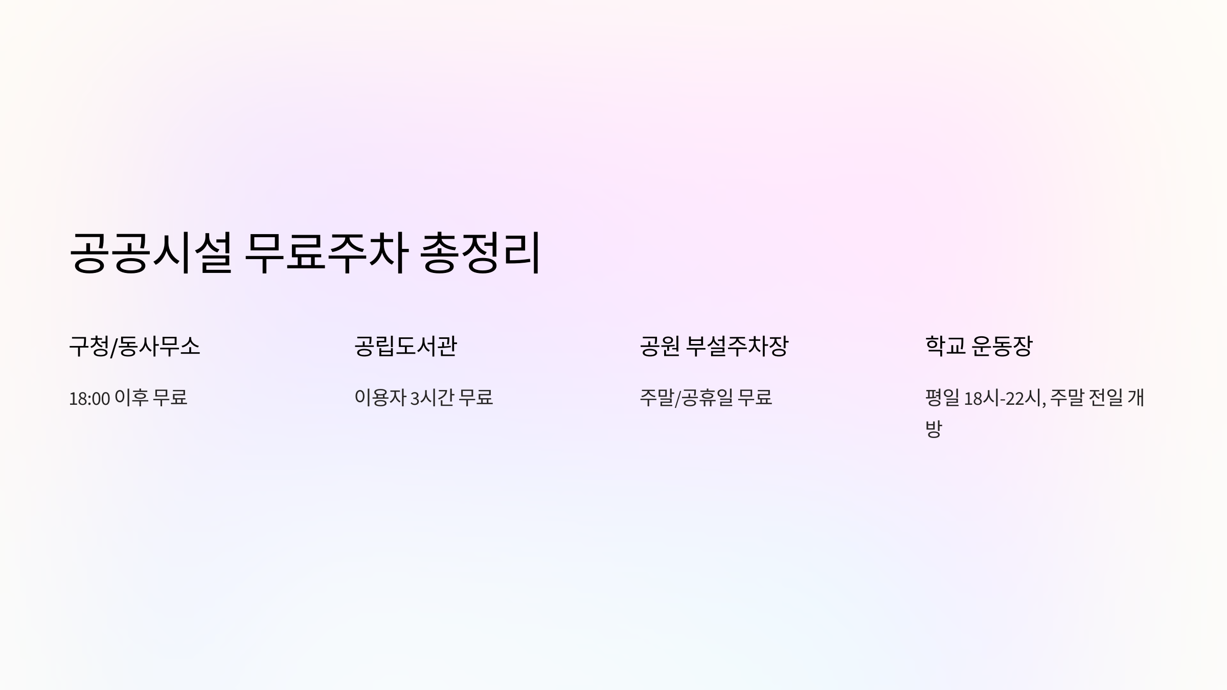 구청·시청 주차장 | 주말·공휴일 전일 무료 | 일부는 평일 저녁도 무료 |
