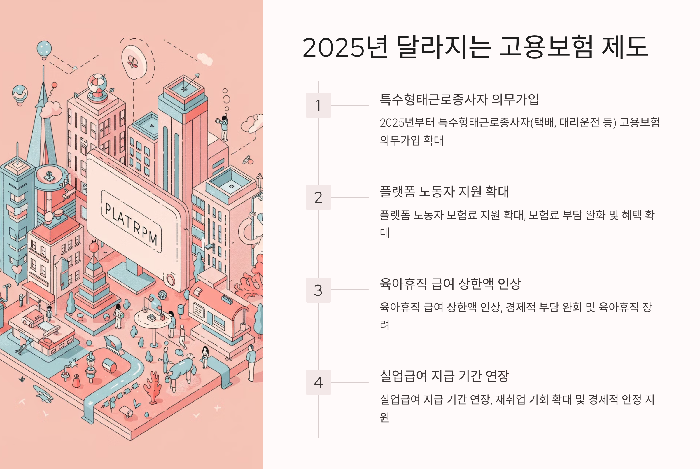 고용보험은 실업, 출산, 육아 등의 이유로 소득이 끊겼을 때 경제적 부담을 줄여주는 중요한 제도예요. 2025년에는 다양한 고용보험 혜택이 강화되면서 더 많은 사람들이 혜택을 받을 수 있게 되었어요.