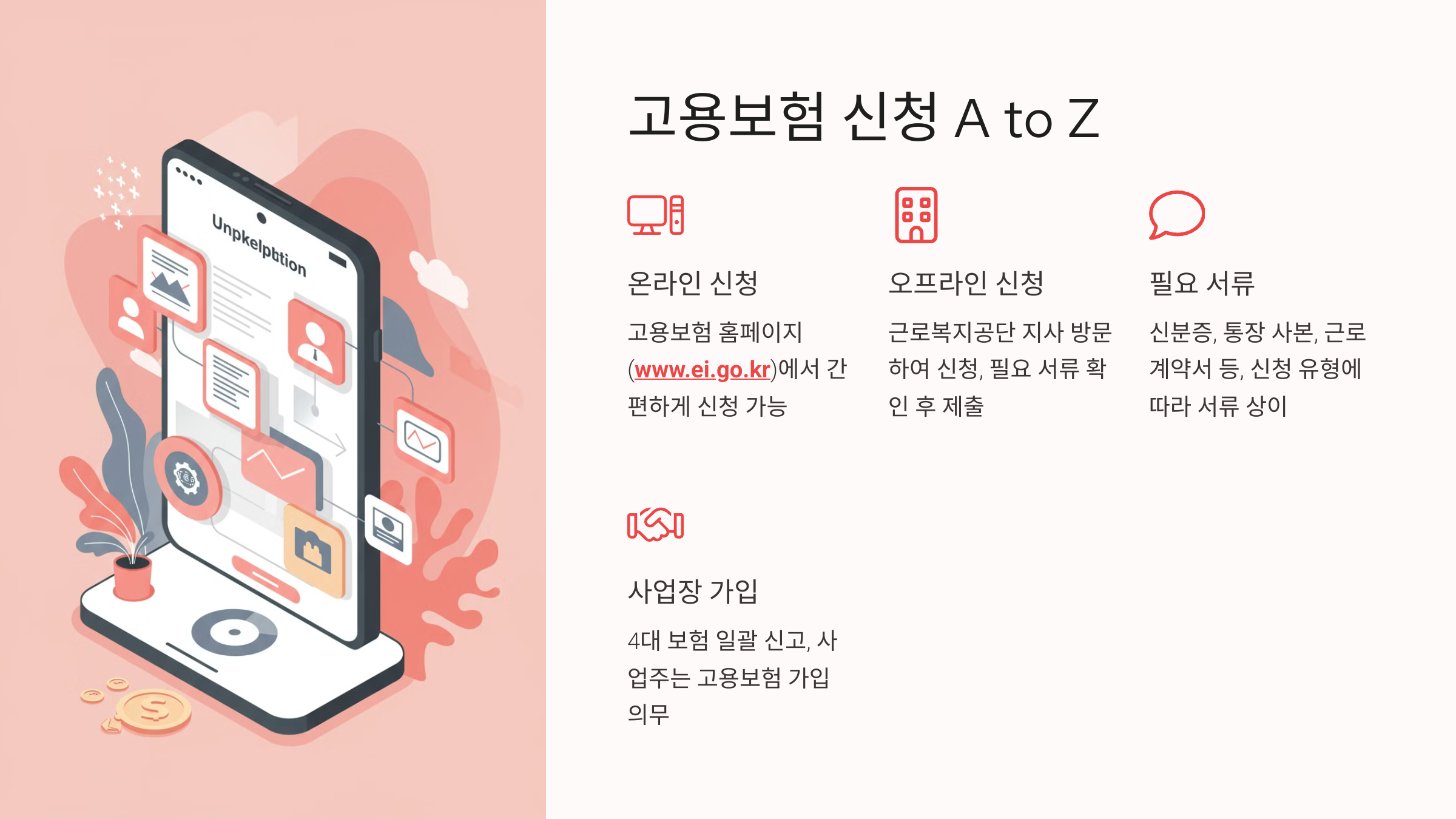 고용보험 신청 절차는 온라인과 오프라인 모두 가능해요. 하지만 보다 빠르게 처리하려면 온라인 신청을 추천해요! 😊