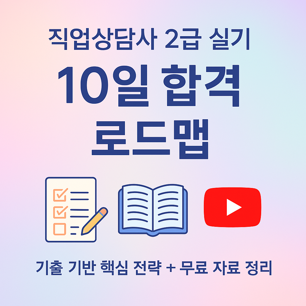 📌 직업상담사 2급 실기시험, 막막해 보이지만 기출 중심 학습 + 무료 강의 + 핵심 PDF만 잘 활용하면 10일 안에도 충분히 합격 가능해요.