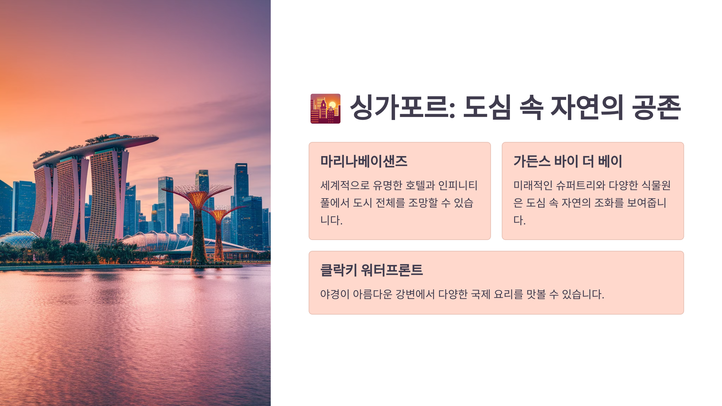 🌇 싱가포르 – 도심 속 과학과 자연의 공존
