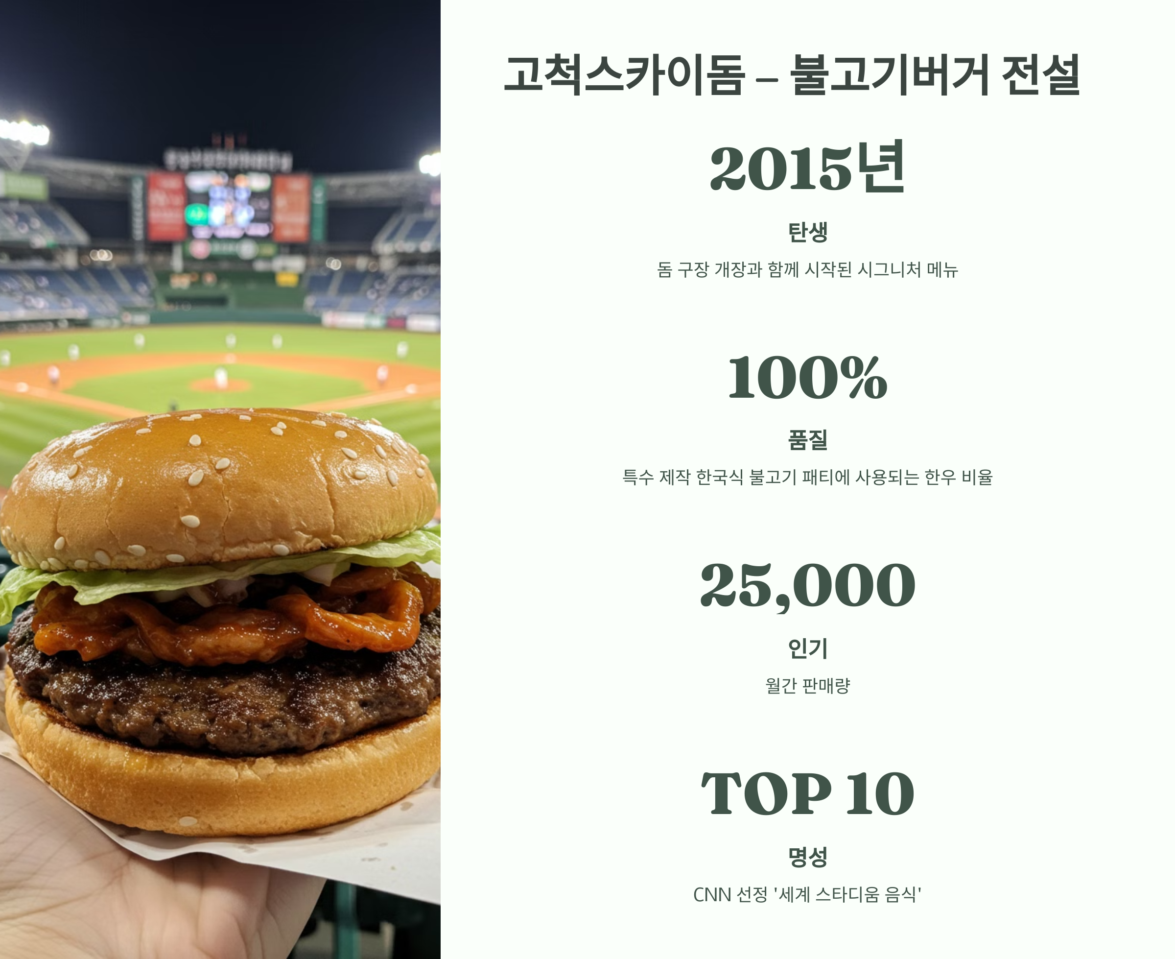 서울 유일의 실내 구장! 고척스카이돔은 ‘햄버거 퀄리티 미쳤다’ 소문이 자자해요.