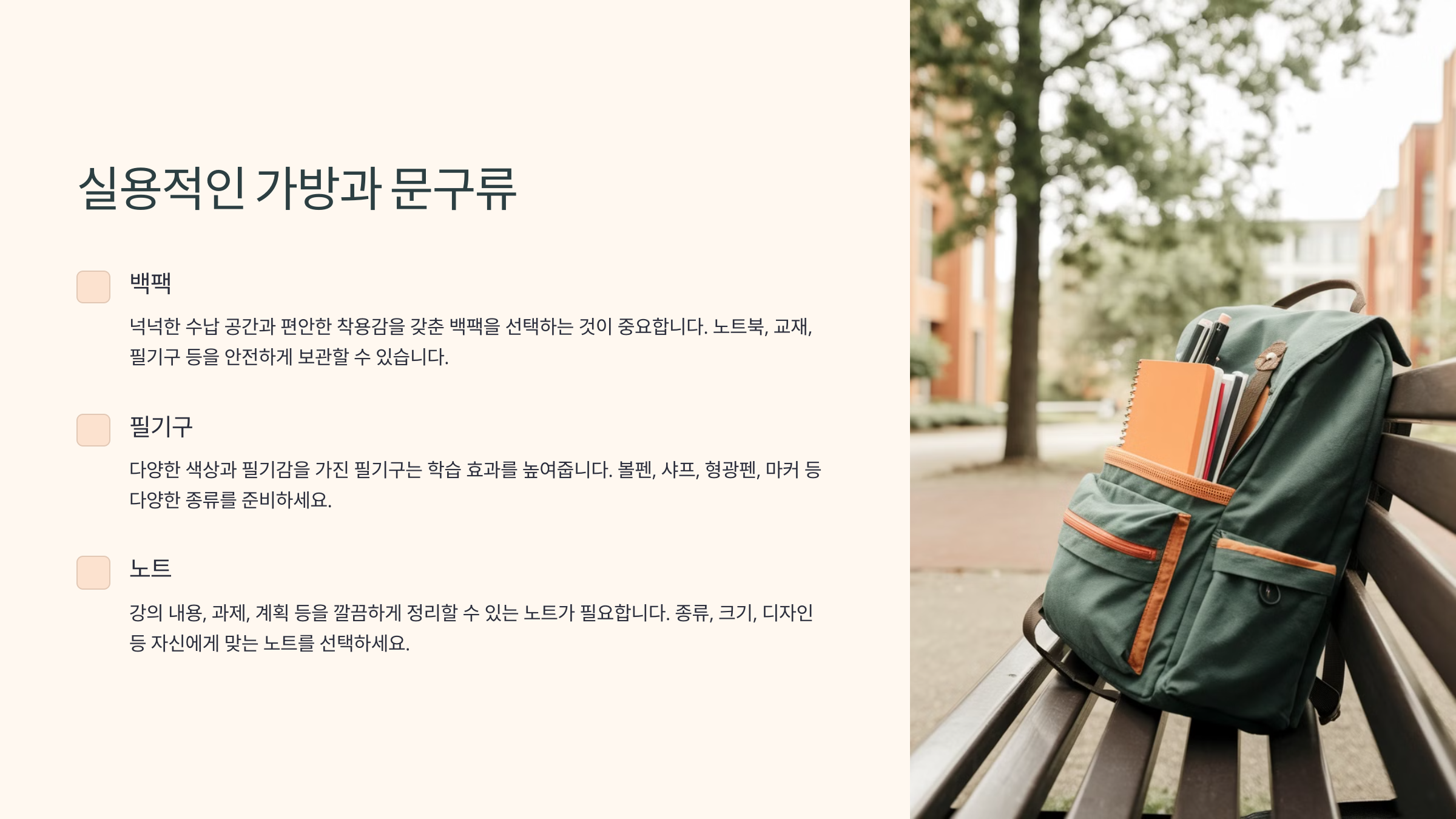 신입생이라면 강의실을 오가면서 여러 물건을 들고 다녀야 해요. 💼 가방은 단순한 패션 아이템이 아니라, 노트북과 책, 필기구를 수납할 수 있는 실용적인 제품을 선택하는 것이 중요하답니다! ✍️