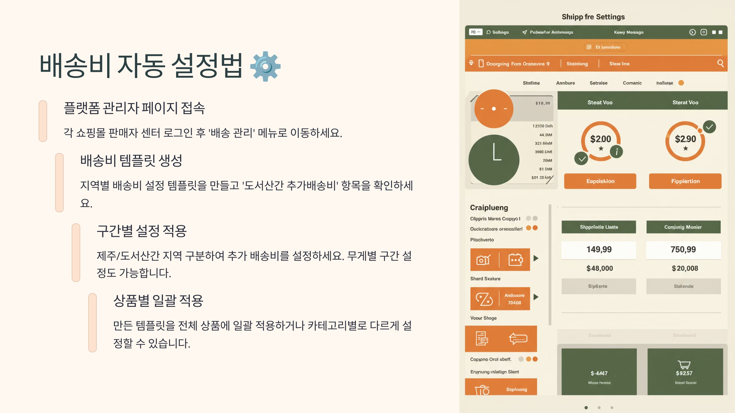 ⚙️ 배송비 자동 설정은 정확한 도서산간 추가요금 적용을 위한 핵심 기능이에요. 플랫폼마다 UI는 다르지만, 대부분 “배송비 정책” 또는 “배송조건 관리” 메뉴에서 설정할 수 있어요.