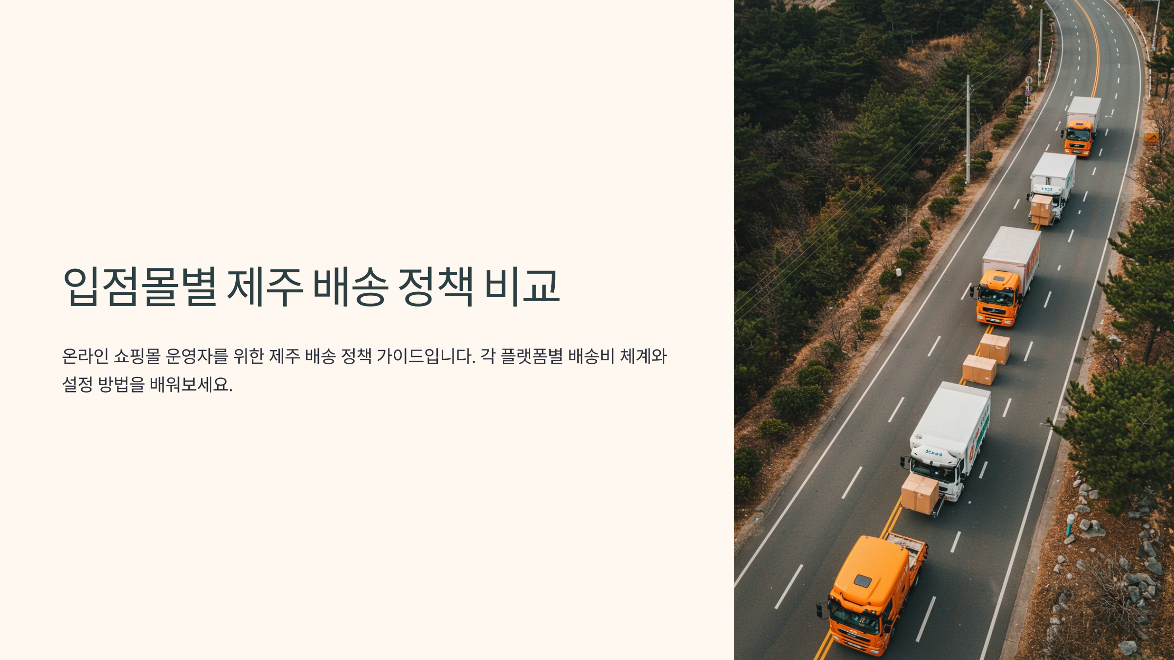 📦 판매자 입장에서 상품 등록 시부터 제주도 배송 관련 조건을 명확히 세팅해야 클레임을 줄이고 불필요한 손실을 예방할 수 있어요. 아래는 주요 쇼핑몰 3곳의 제주도 정책 비교예요.