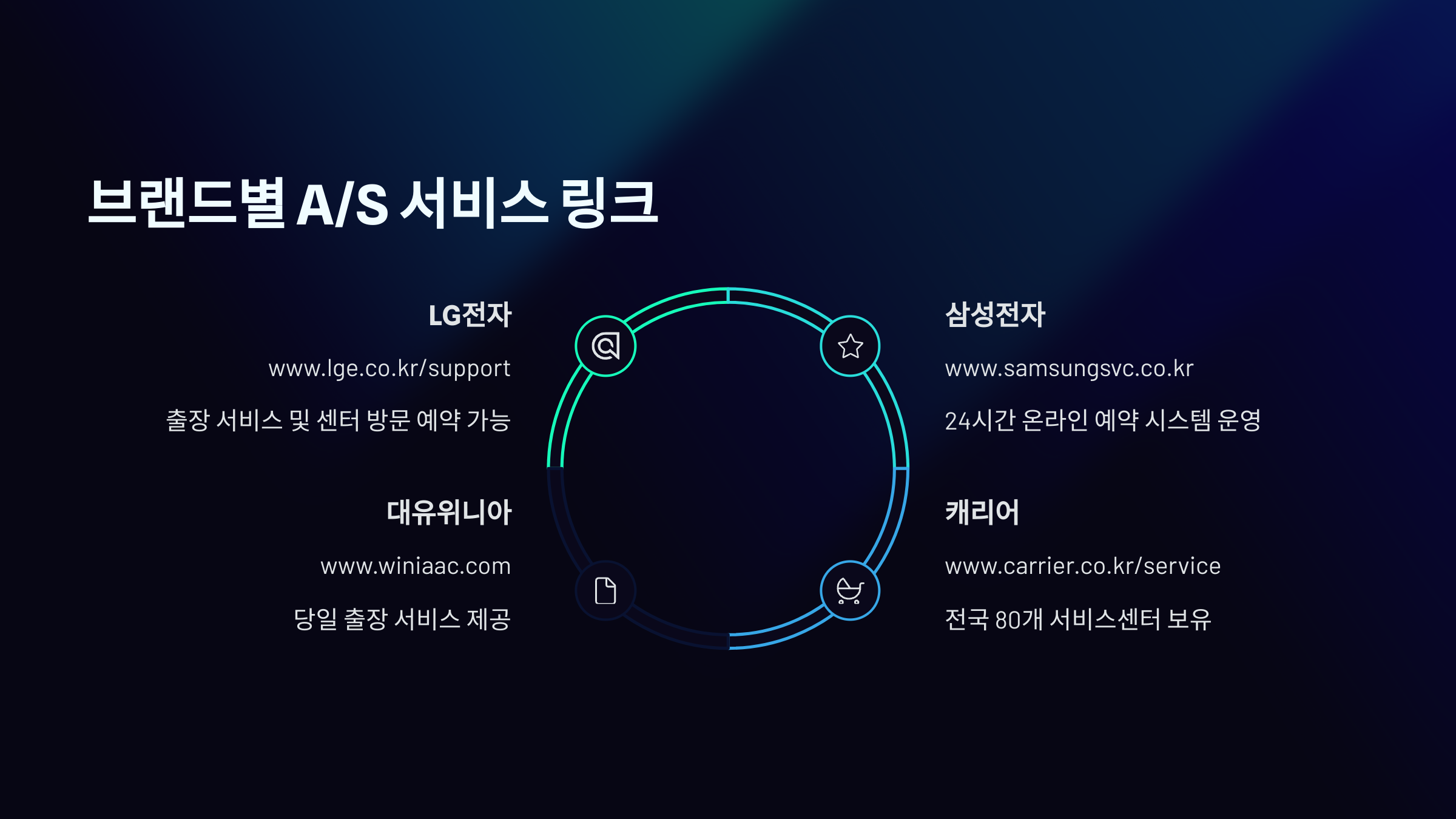 📞 무상 점검 신청이나 고장 접수는 각 제조사 공식 서비스 센터를 통해 진행해야 해요. 앱, 웹사이트, 전화 접수 모두 가능하며, 에어컨 제품번호와 구매일자를 준비해두면 훨씬 빨리 처리돼요.