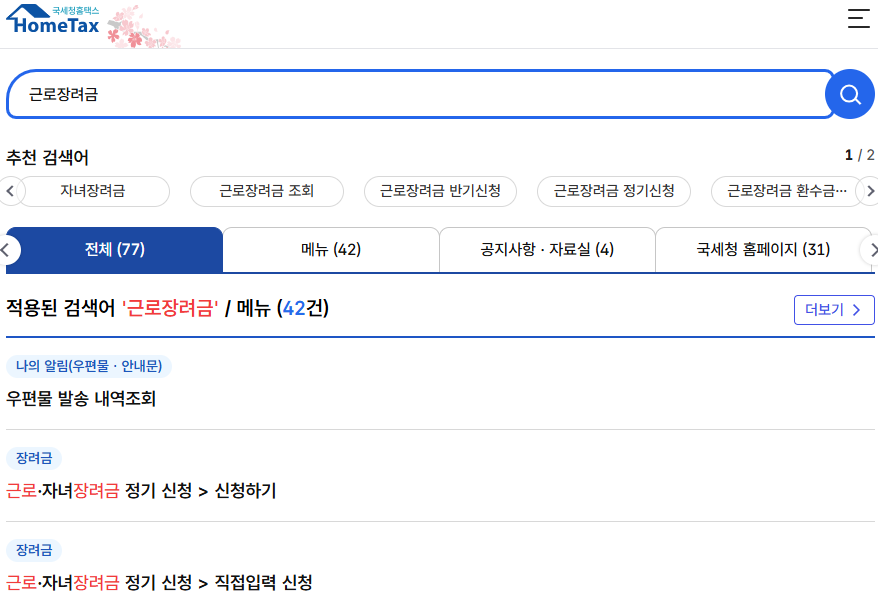 - 💻 홈택스 PC 사이트 → 근로장려금 메뉴