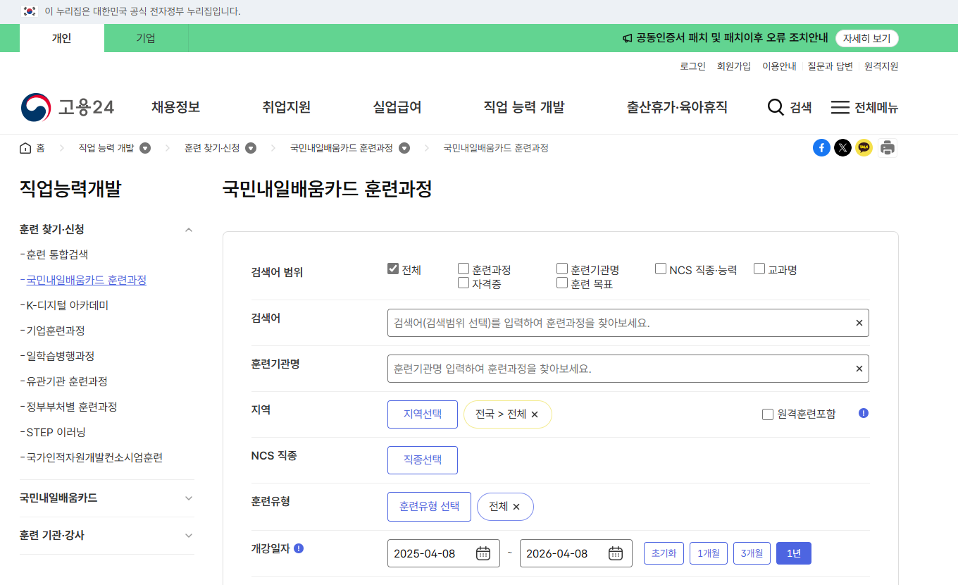 ✔️ 훈련과정 신청은 HRD-Net에서 직접 검색 후 수강신청하시면 돼요.