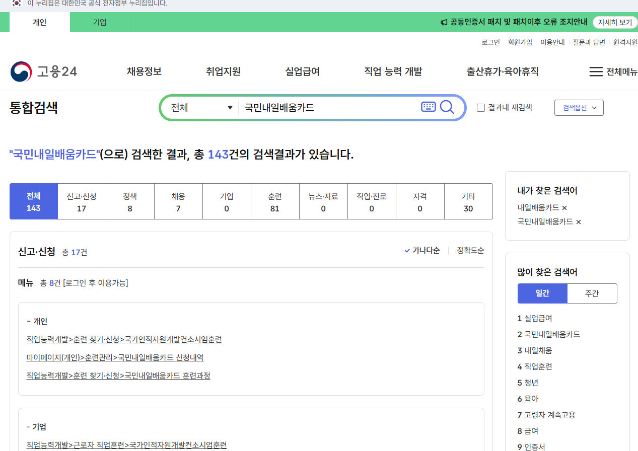 코로나 이후 고용시장이 크게 변화하면서, 정부도 구직자와 경력단절자, 직장인 재교육을 위해 ‘국민내일배움카드’를 핵심 정책으로 밀고 있어요.