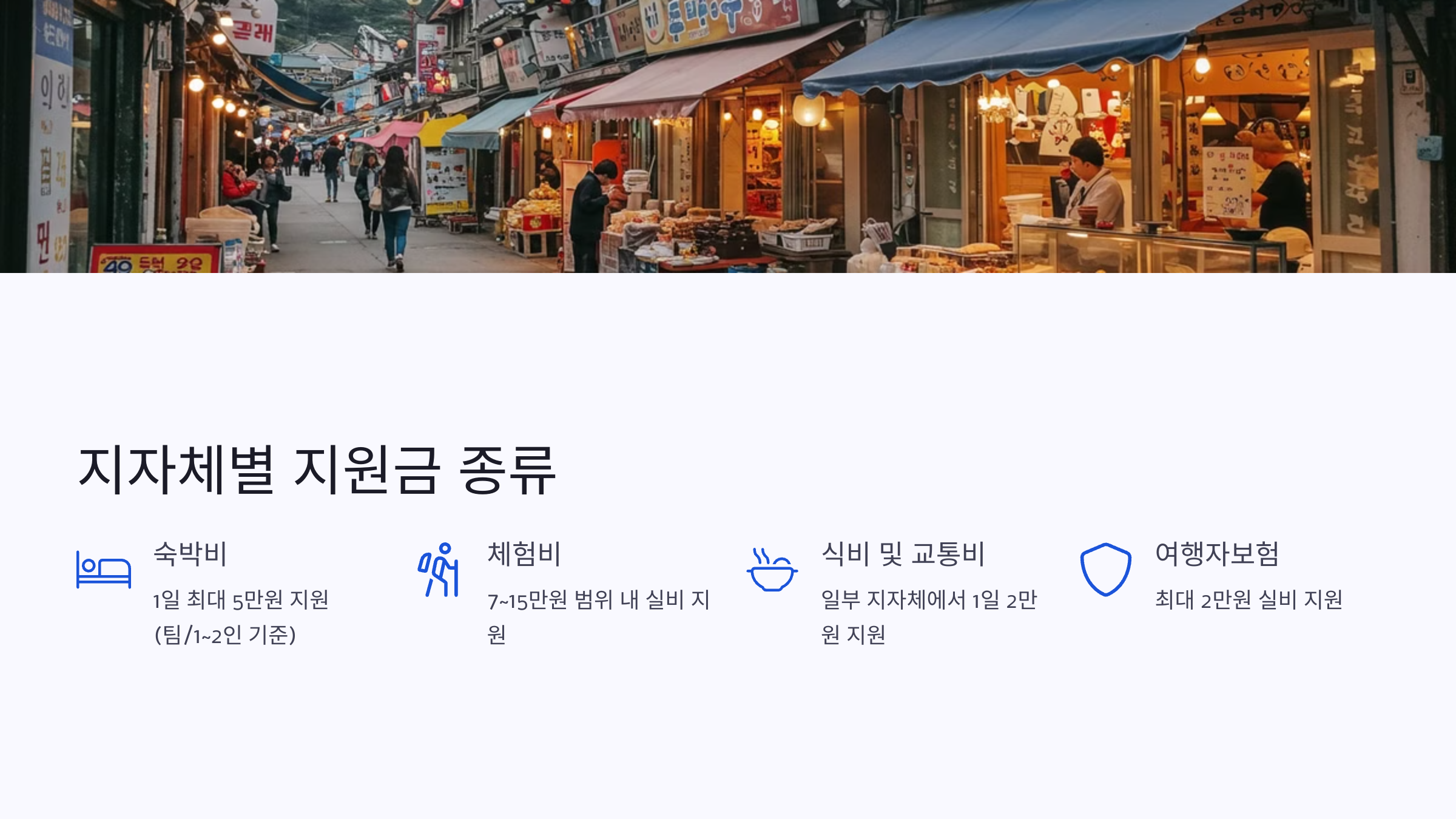 | 지원 주체 | 지자체 / 지방 관광재단 |