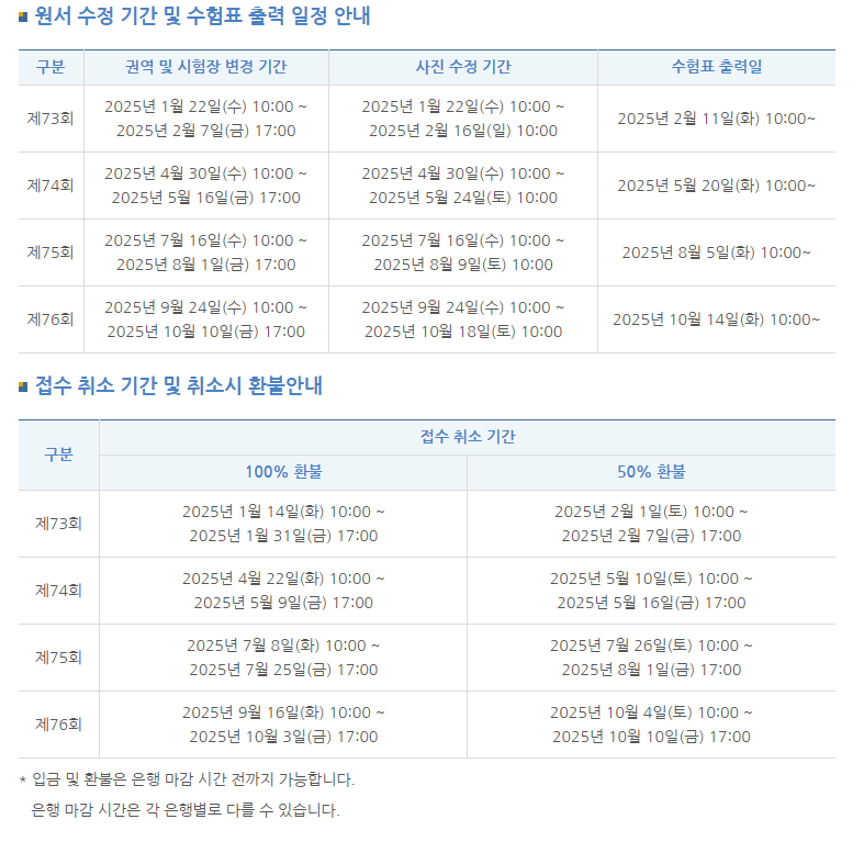 2025년 시험 일정 한눈에