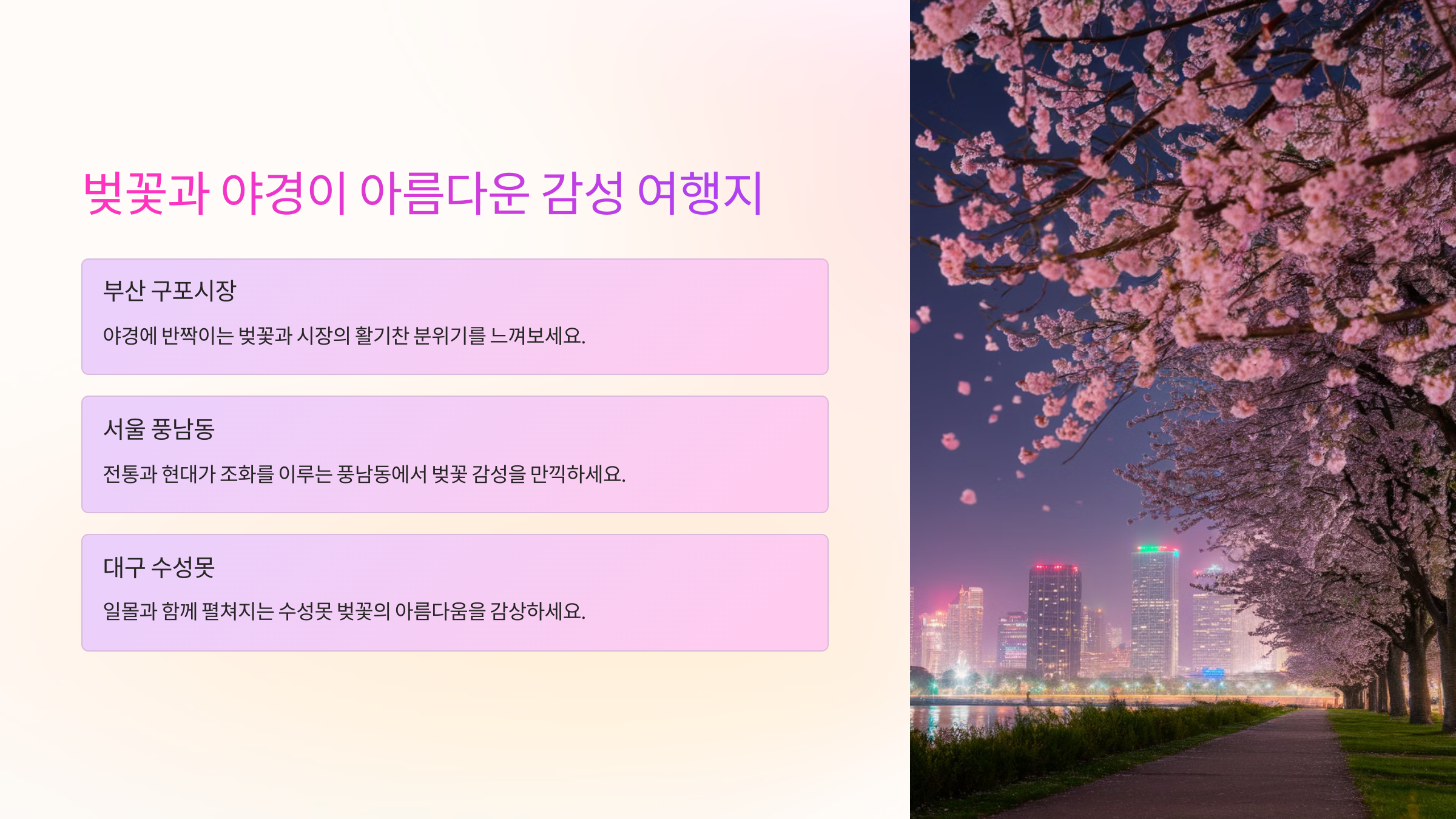🌙 벚꽃과 야경이 아름다운 감성 여행지