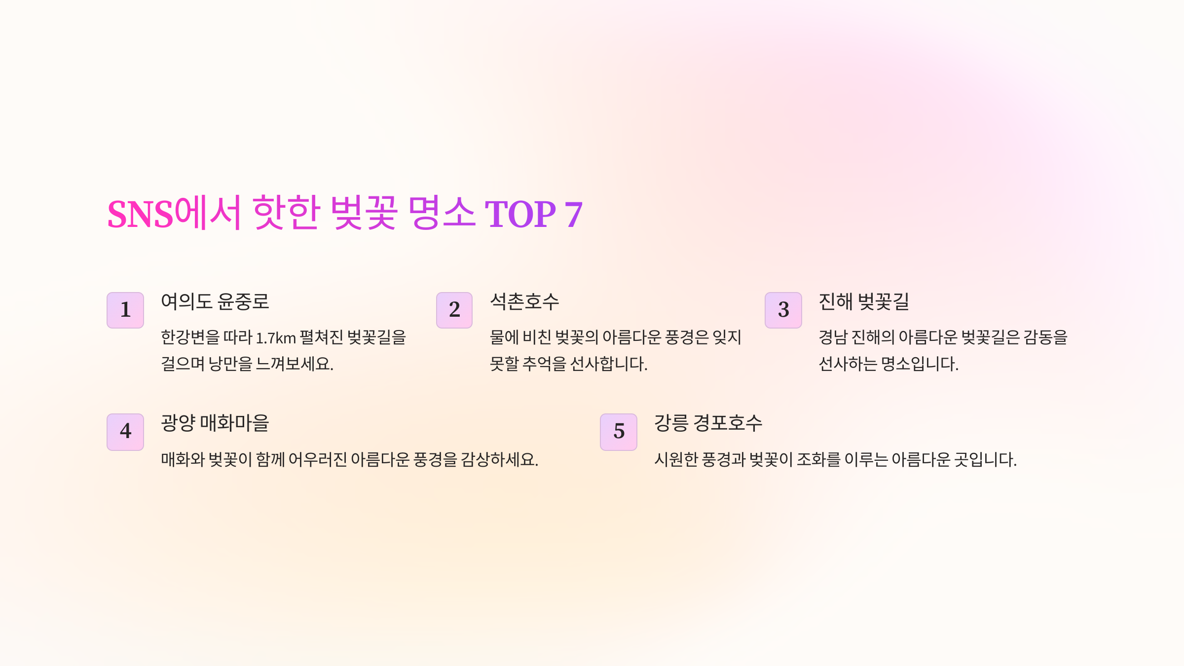 📷 SNS 인기 벚꽃 명소 TOP 7