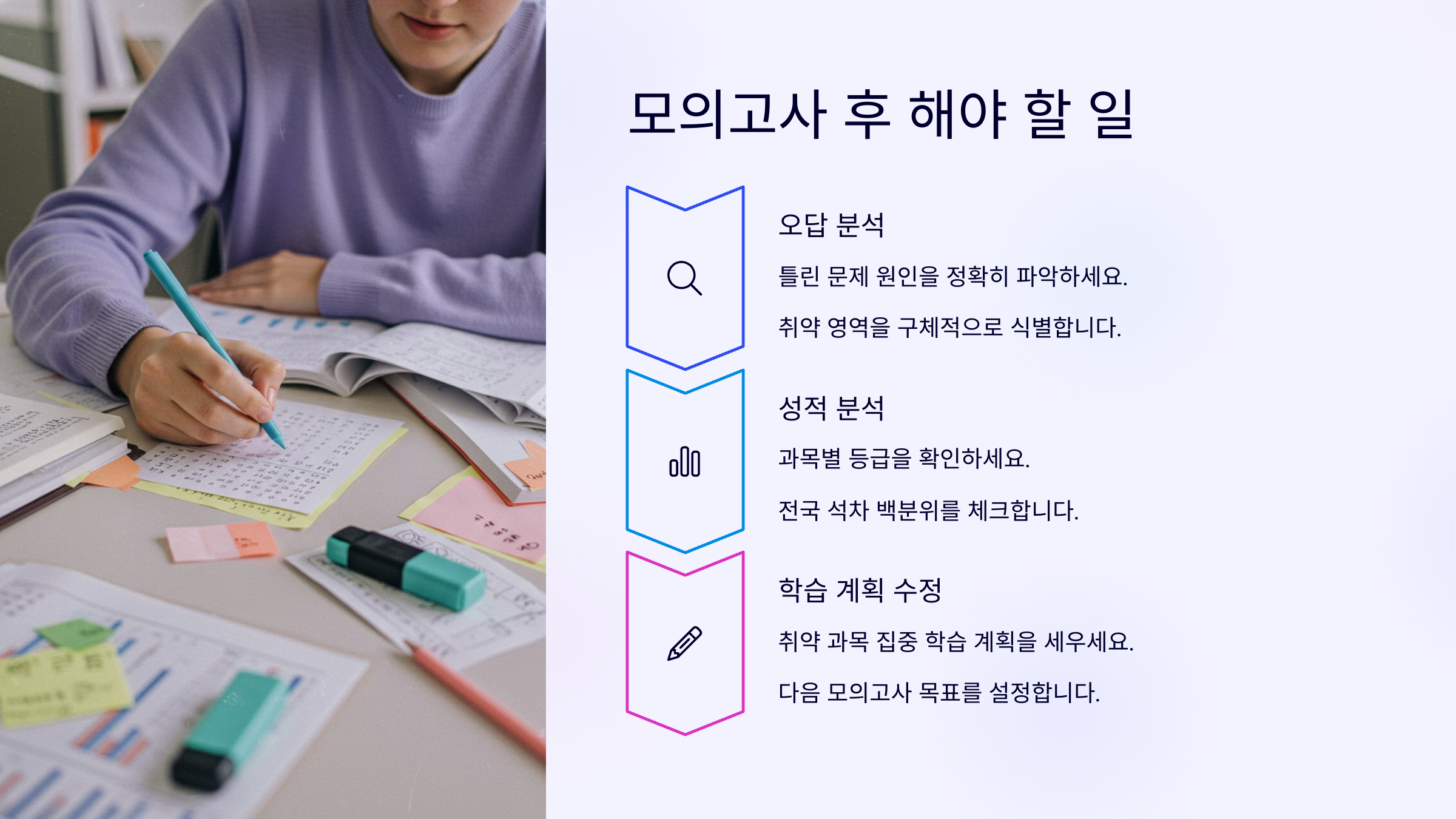 모의고사는 시험 당일보다 "그 이후가 더 중요"해요.시험을 제대로 복습하고 분석해야 실력이 진짜 늘어요!