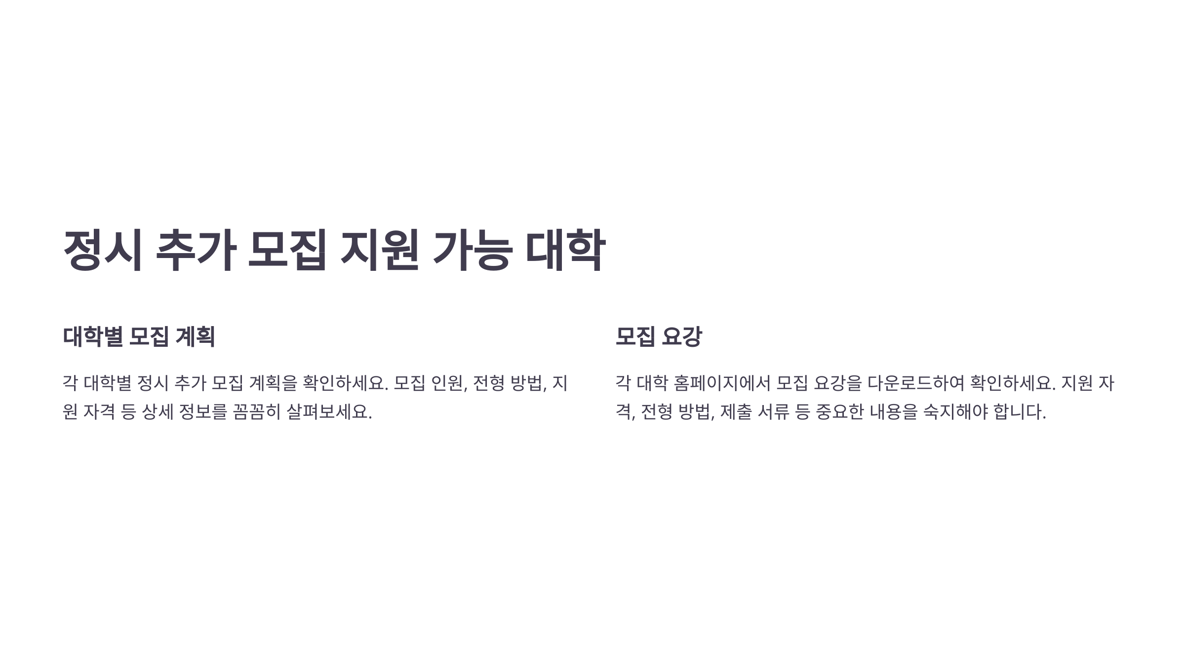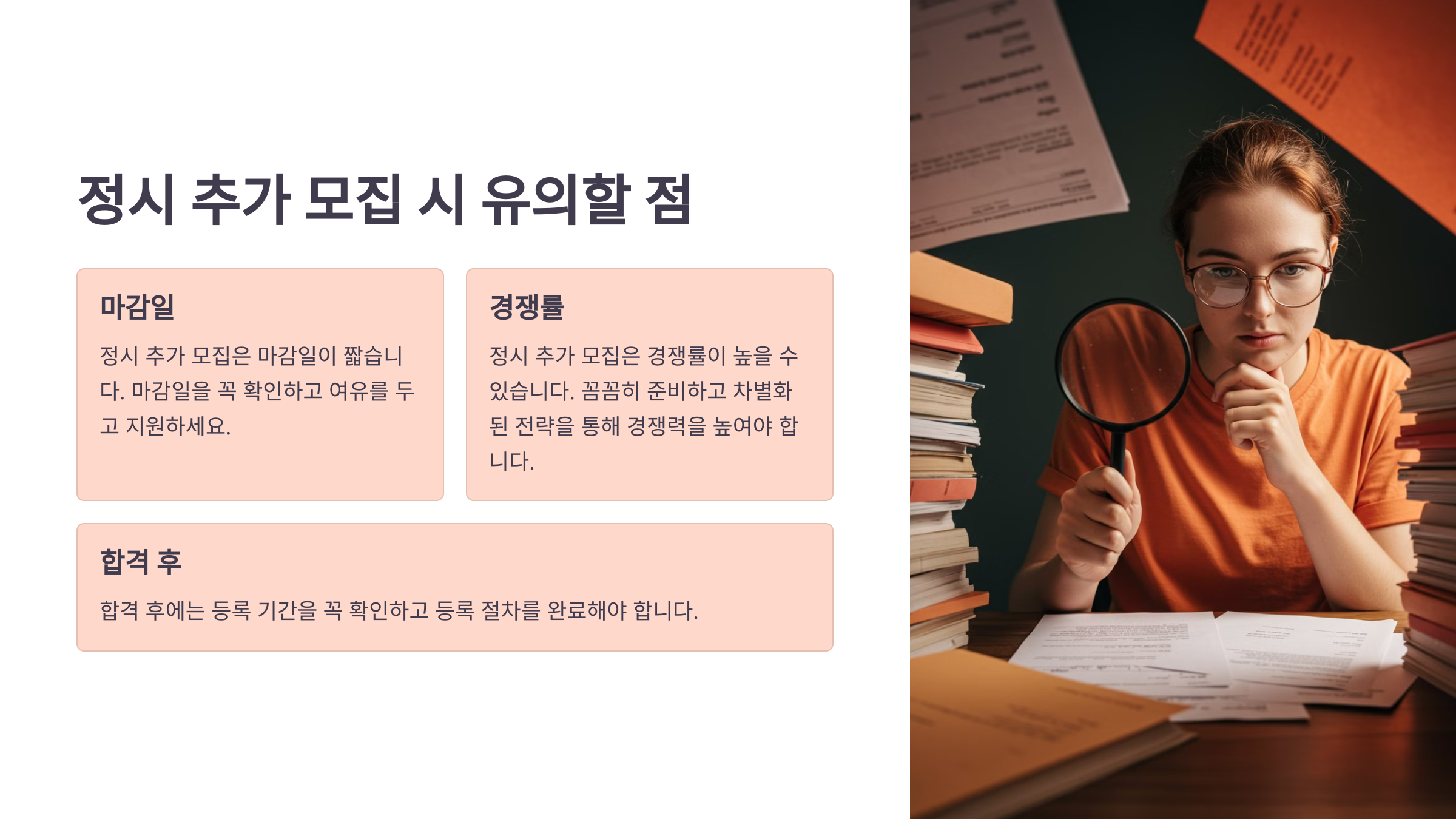 정시 추가 모집은 매우 짧은 기간 동안 진행되므로, 신속한 정보 확인이 필수입니다.