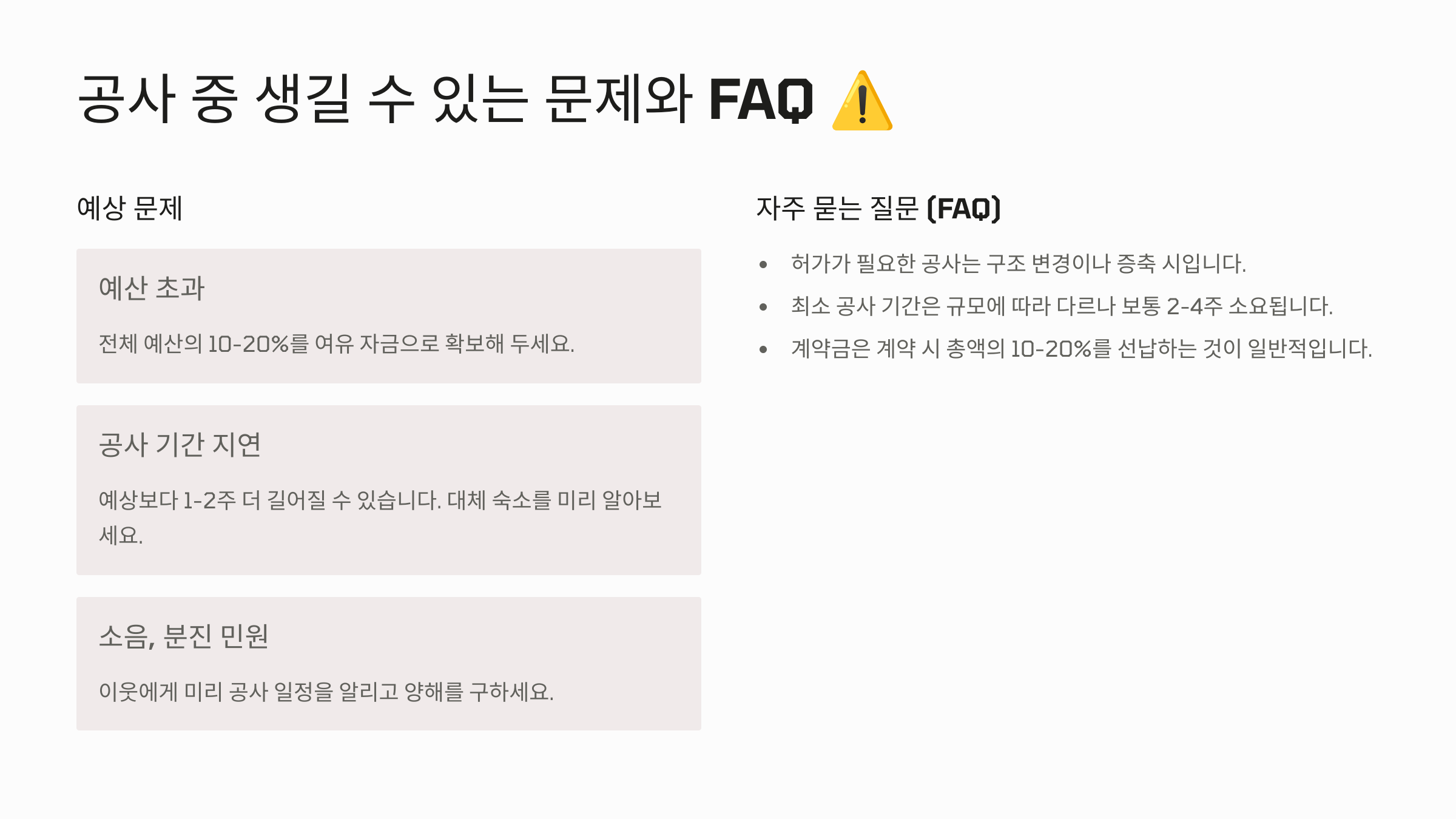 공사 중 생길 수 있는 문제 ⚠️