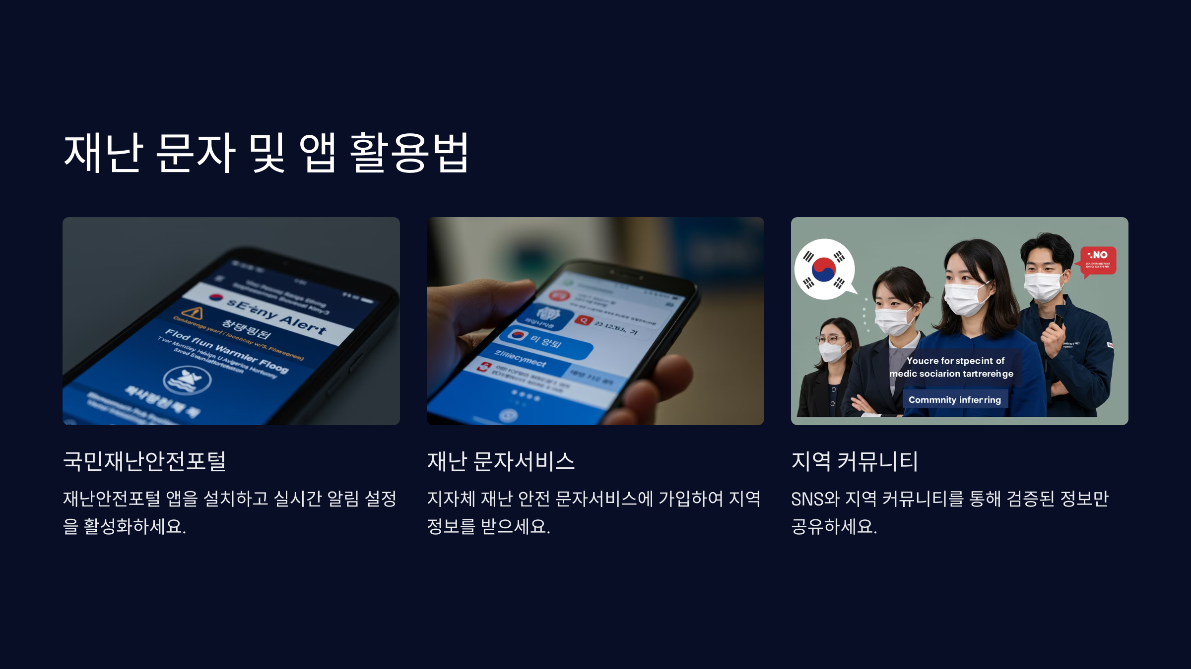 | 긴급재난 문자 📩 | 문자 알림, 실시간 경보 | 즉시 전달, 자동 수신 |