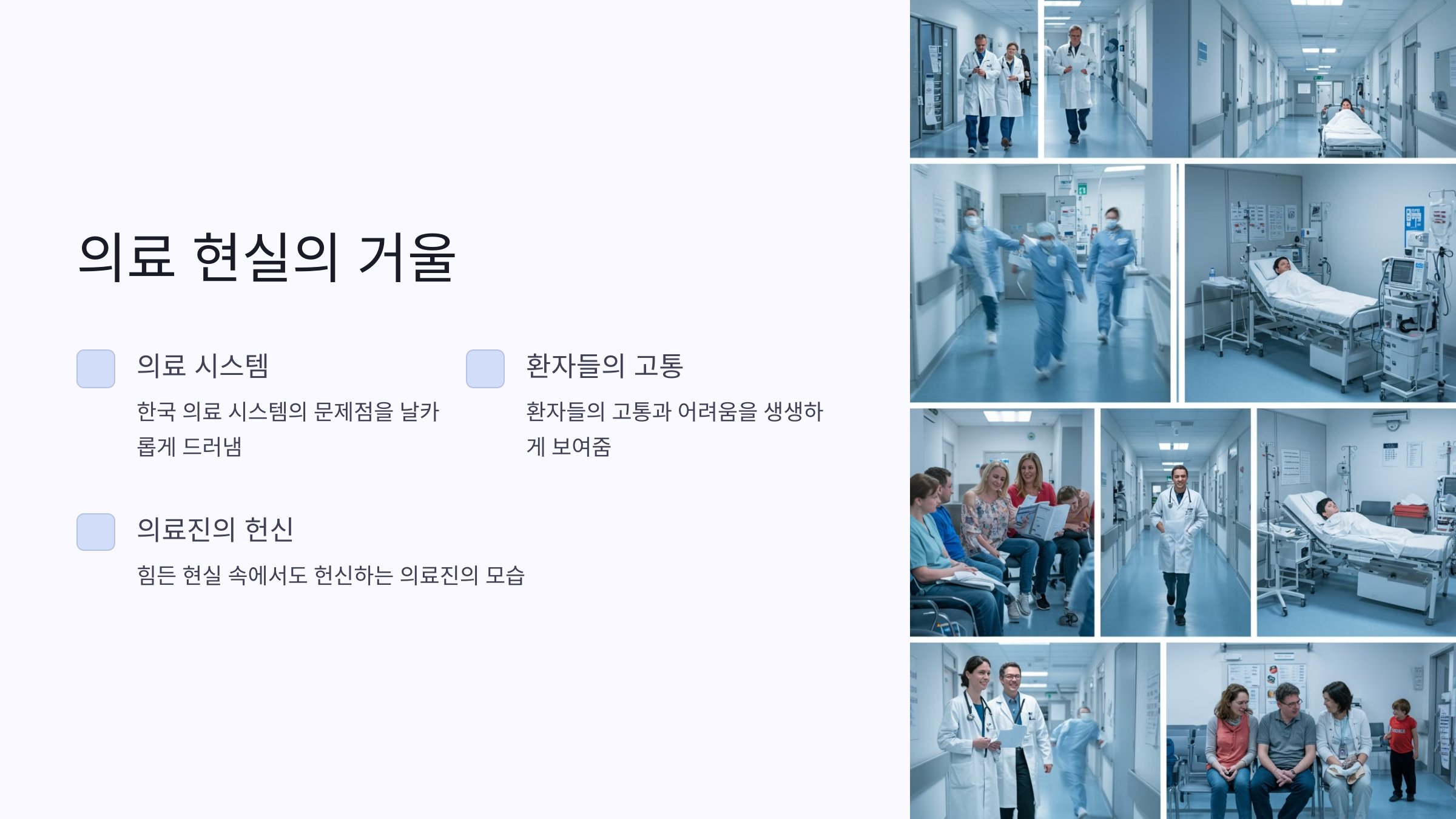 2. 🏥 대한민국 의료 현실을 적나라하게 조명