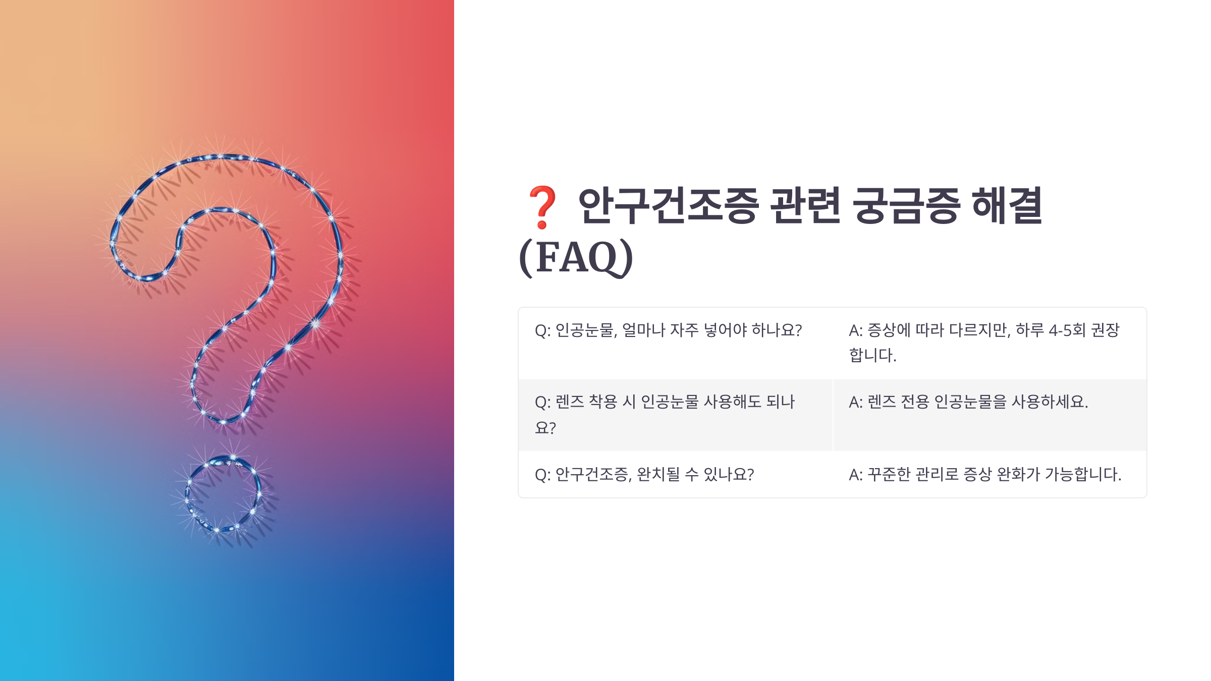 📌 안구건조증 관련 자주 묻는 질문 (FAQ)